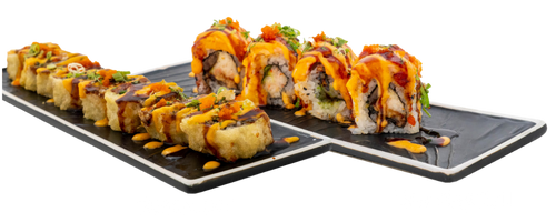 Smoked Salmon, Cream Cheese, Avocado, Deep Fried topped w/ Masago, Scalions, Spicy Mayo, Unagi Sauce